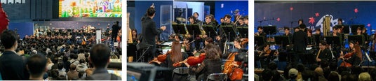 2日目のイベントステージでは、『メイプルストーリー』のBGMをオーケストラで奏でる、会場限定のオーケストラコンサートが開催されました。今回の公演は、より近い距離でオーケストラを楽しんでもらえるような構成としました。