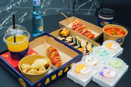イベント会場にはちょっとした休憩所であるカフェスペースも用意しました。チーズドックやトッポギ、ドリンクなどのメニューを販売し、特にキャラクターが描かれたマカロンが大人気でした。