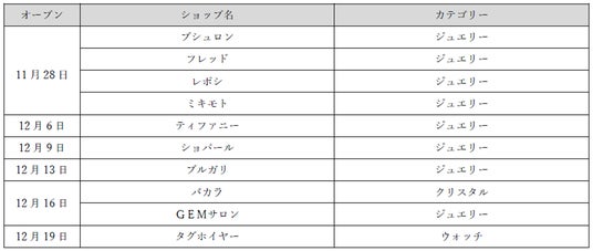 プレステージファッションからワールドクラスのジュエリーやウォッチまで、規模・内容ともにグレードを高め、ラグジュアリーを身近に楽しんでいただけるショップ揃えを実現してまいります。