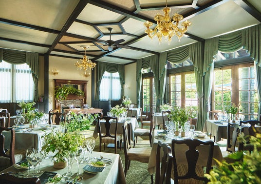 料理は、軽井沢ならではの食材を使用した美食フレンチをご用意。標高1,000mのテラスからは浅間山の絶景を一望でき、夜には満天の星空をお楽しみいただけます。
