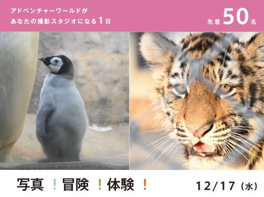 アドベンチャーワールド(和歌山県白浜町)は、写真体験イベント「休園日のパークが、あなたの撮影スタジオになる1日」を2025年12月17日(水)の休園日に開催いたします。2年ぶり6回目の開催となる今回は動物の赤ちゃんとの出会いをテーマに、「今しか出会えない!」動物たちの姿を撮影いただきます。