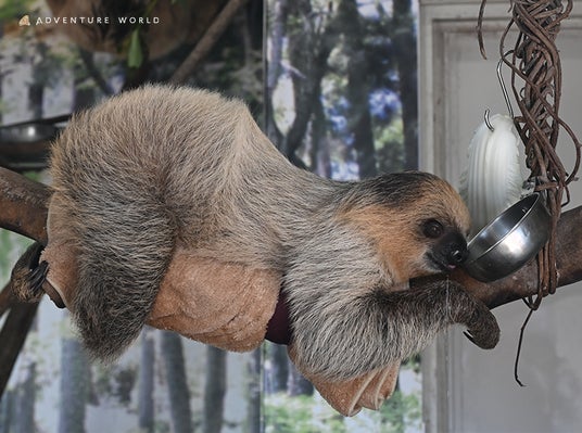 1歳のナマケモノのこどもに大好物で作った特製プレートをプレゼント