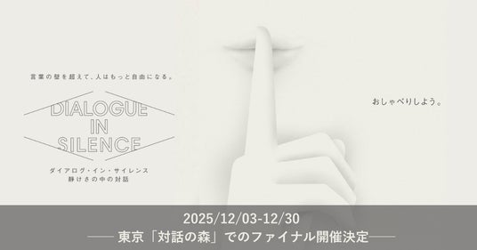 一般社団法人ダイアローグ・ジャパン・ソサエティ(所在地:東京都港区、代表理事:志村季世恵)は、聴覚障害者の案内のもと、音のない世界で、言葉の壁を超えた対話を楽しむエンターテイメント「ダイアログ・イン・サイレンス」を、2025年12月3日(水)から12月30日(火)までダイアログ・ダイバーシティミュージアム「対話の森」(東京都港区竹芝)において開催いたします。