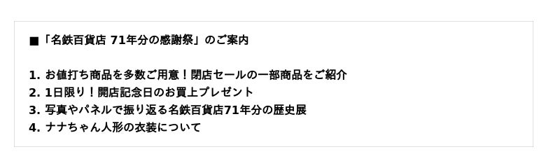 「名鉄百貨店71年分の感謝祭 第1弾閉店セール」11月26日(水)~12月31日(水)