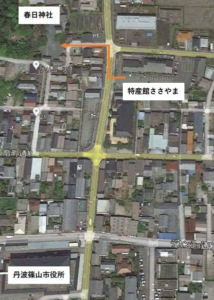 春日神社には参拝者用の駐車場はありません。特産館ささやまの駐車場をご利用ください。