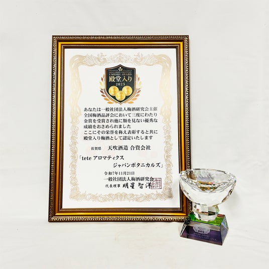 今回、天吹酒造 合資会社「tete アロマティクス ジャパンボタニカルズ」が見事殿堂入りとなりました。