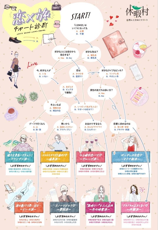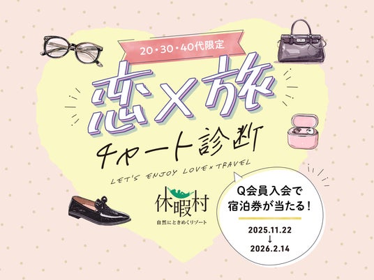 【20・30・40代限定】あなたにぴったりの休暇村を恋愛で診断!?自然にときめくリゾート休暇村、恋と旅を掛け合わせた「恋×旅(コイタビ)チャート診断」を11月22日よりスタート