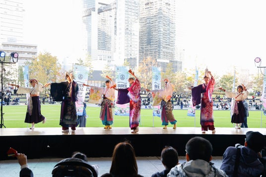 大阪(1970年の大阪万博)から世界に広がり、今年の大阪・関西万博では2日間で5万4千人を超える入場者を集めるなど大好評を博した高知発祥の「よさこい」。「SUPER LOCAL 高知家 ~食と酒とよさこいの秋~」では、関西で活躍するよさこいチーム・夢源風人、つるみまんてんYO!∞、ここなら鳴ル子組小春の3チームが華やかな演舞を披露しました。