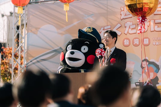 イベントオープニングセレモニーは11月22日、阿蘇熊本空港の空岡公園にて開催され、熊本武将隊による地方色豊かなパフォーマンスや、熊本県のマスコット「くまモン」との交流が行われ、温かく親しみやすいおもてなしの姿勢が示されました。現地には、交通部観光局大阪事務所所長・張珏氏、空港会社董事長・楊偉甫氏、日本熊本県知事・木村敬氏、阿蘇熊本空港社長・山川秀明氏らが出席し、台湾と日本の空港が観光プロモーションで緊密に協力していることを象徴しました。