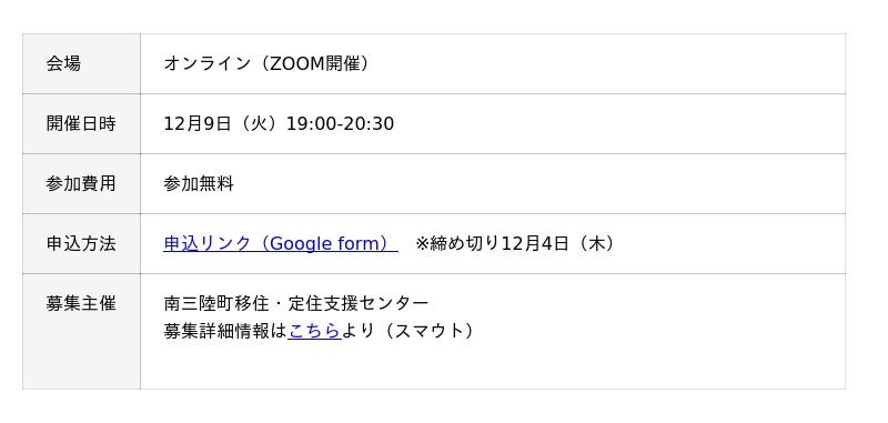 「まなびがめぐるまちー南三陸でひらく"学び"の可能性」 - 主催:南三陸町移住・定住支援センター 共催:南三陸町観光協会 / OL開催:12月9日(火)19:00~20:30