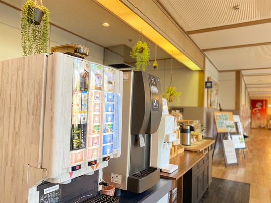 館内ラウンジの「フリードリンクコーナー」(宿泊者無料)では、ホットコーヒーや和紅茶で体を温められます。