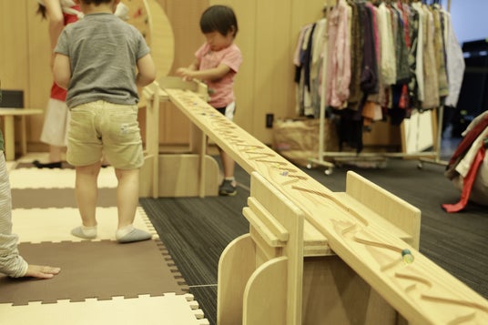 遊びのコーナーには、木のおもちゃや「巨大お絵かき」のキャンパスを用意し、子どもたちは自由に楽しめます。花紙あそびやコースター、チャームづくりなどの工作コーナーでは、自分だけの作品をお土産として持ち帰れます。