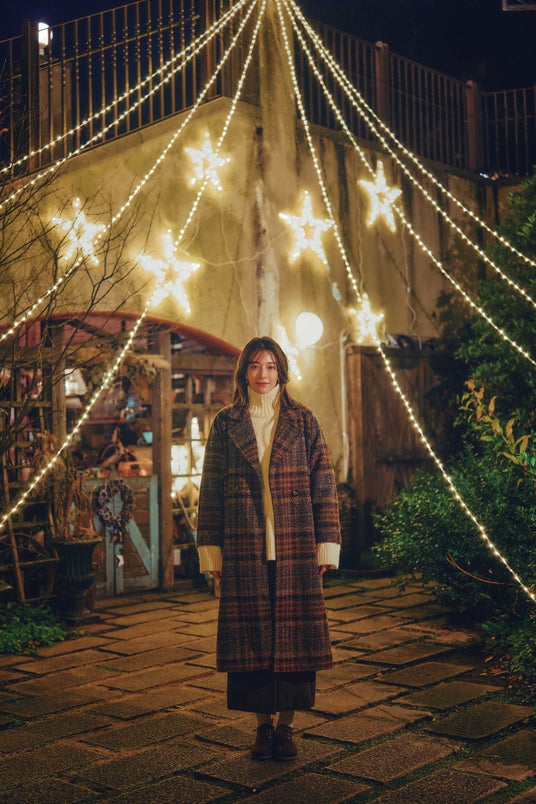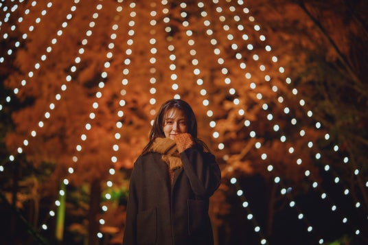 高さ約25mのメタセコイアを約1,600球の電球でクリスマスツリーに仕立てた「森のクリスマスツリー」最高のフォトスポット