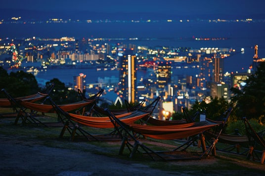 神戸クリスマスマスマーケットは朝、昼、夜と丸一日楽しめます。クリスマスシーズン限定の「夜景&ハンモック」スポットも登場しています。その他、様々な夜景スポットが点在しています。