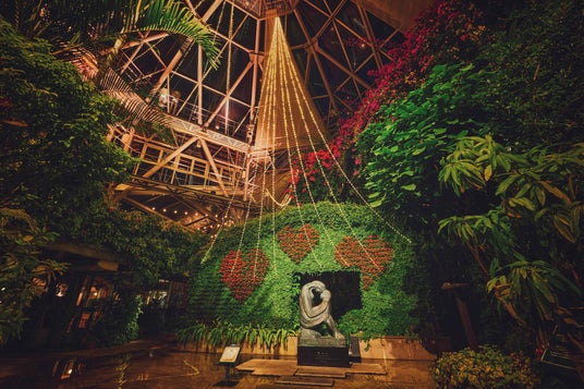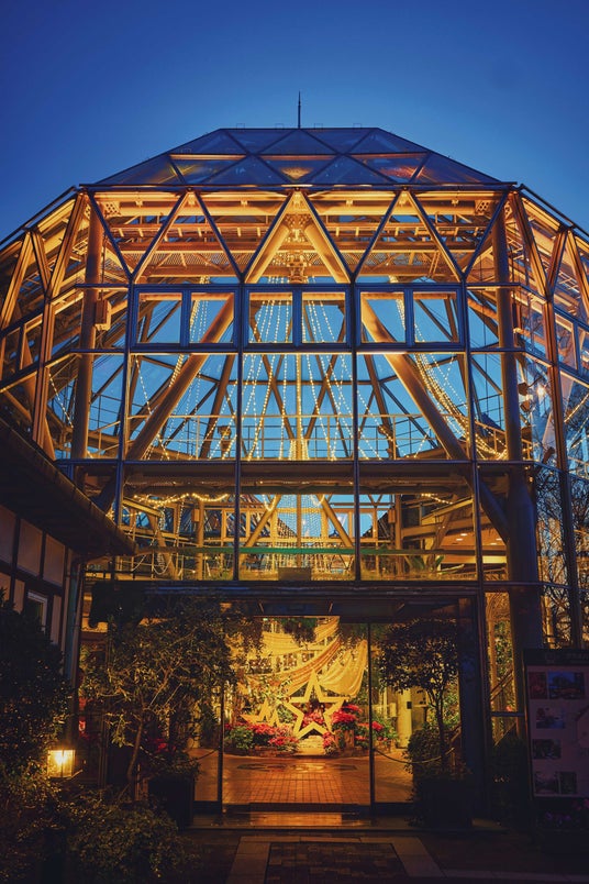 熱帯植物が彩るガラス張りのドーム型のグラスハウス(温室)