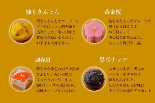 「これが本当にさつま揚げ?」と思わず驚く、まるでトリュフチョコや上生菓子のような可愛らしい見た目で、新春のテーブルを華やかに彩ります。小さいお子様にも喜ばれること請け合い。「見ても楽しい、食べてもおいしい」アソートです。