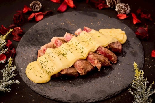焼き立てステーキに雪のような濃厚チーズをたっぷりかけた、冬のご馳走プレート。