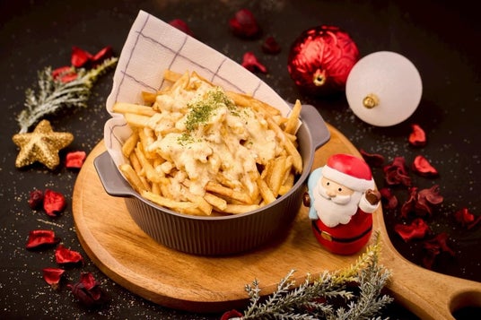 熱々ポテトに雪のようにとろけるラクレットをかけた、冬の幸せが詰まった一品。