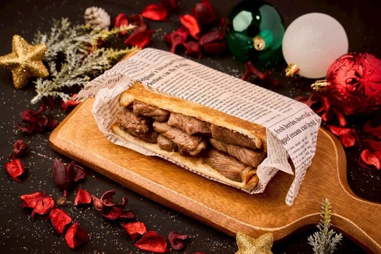 香ばしい黒毛和牛をぎゅっとサンドした、寒い夜に心までとろける贅沢グルメ。