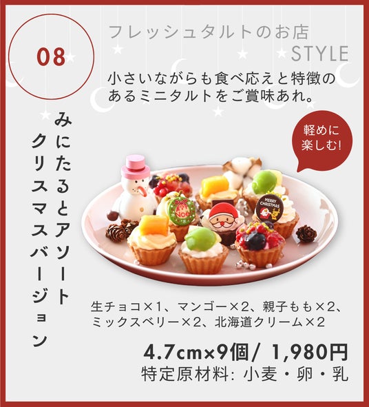 みにたるとアソート クリスマスバージョン/4.7cm×9個/1,980円(税込)5種類のミニタルトは、小さいながらも食べ応えたっぷり。