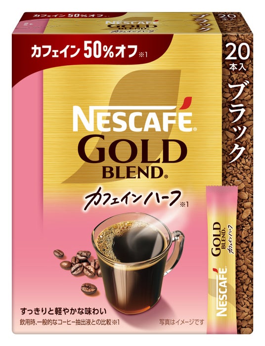 ネスカフェ ゴールドブレンド カフェインハーフ スティック ブラック 20P/40円相当ポイントカフェインを半分(※)におさえながらも、選び抜かれたこだわりの豆と製法で、「ネスカフェ ゴールドブレンド」ならではの上質な香りとすっきりとした軽やかな味わいを実現。持ち運びにも便利なスティックタイプなので、外出先や仕事中でもお勧めです。個包装なので、いつでも淹れ立ての一杯をお楽しみいただけます。