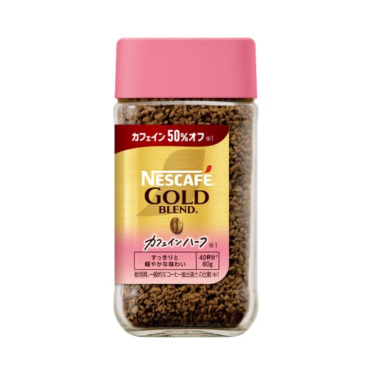 ネスカフェ ゴールドブレンド カフェインハーフ 80g/50円相当ポイントカフェインを半分(※)におさえながらも、選び抜かれたこだわりの豆と製法で、「ネスカフェ ゴールドブレンド」ならではの上質な香りとすっきりとした軽やかな味わいを実現。