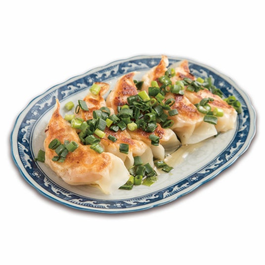 【海老ぎょうざ5個】550円(税込)ぷりっとした海老の食感と、手包みならではのもっちりとした皮が自慢の逸品。焼き上げることで香ばしさが際立ち、噛むほどに広がる海老の甘みとジューシーな旨味が口いっぱいに広がります。