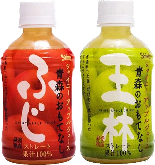 ふじは甘み・酸味のバランスがよく、王林は豊かな香りと抜群の甘さが特徴の青森県産果汁100%リンゴジュース。