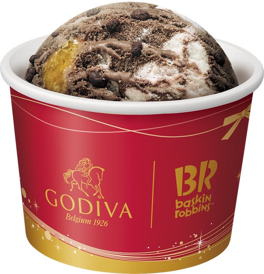 2種類のチョコレートと芳醇な香りのバニラリボンが三位一体になったおいしさで、見た目もクリスマスにぴったり!ゴディバとサーティワンの自信作です。