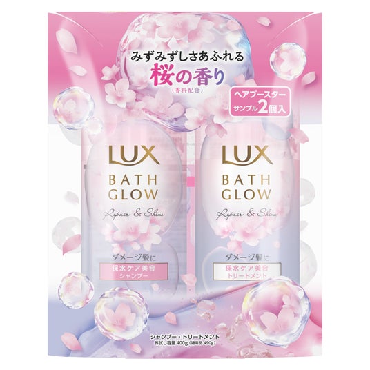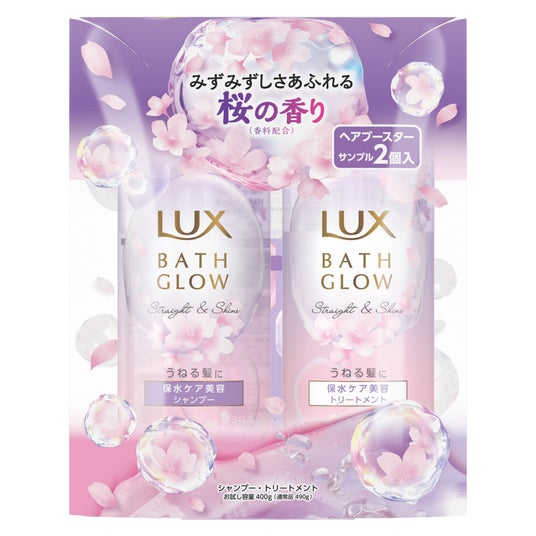 ラックス バスグロウは、お風呂上がりの髪のまとまりやツヤが一日続いてほしい、という多くの声から誕生した、“保水ケア美容”をコンセプトとした製品です。髪一本一本にうるおいをチャージし、保水力持続のため、ぷるぷる浸透ウォーターゼリー※7配合処方により、朝起きてから1日中素直にまとまるツヤ髪へ導きます。サクラ シリーズではサクラエキス(保湿成分)配合で、よりみずみずしさにあふれる香りを表現しています。ヘアブースターのサシェ付きで、お試しいただけます。