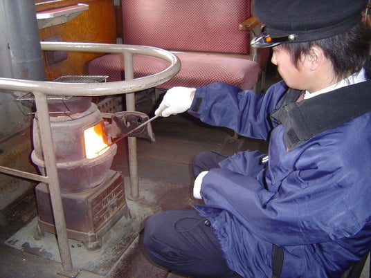 特に冬季に運行される「ストーブ列車」は、車内にレトロなダルマ型の石炭ストーブが設置されて、乗客はストーブの火で炙りながら香ばしいスルメを味わうことができます。