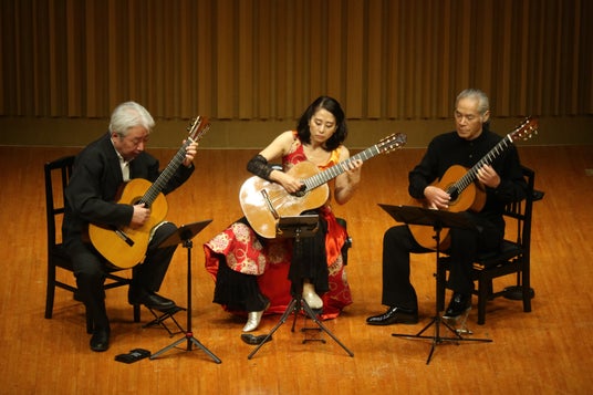 今回のリサイタルには、当社グループがかねてより支援しているクラシックギタリストの河野智美氏のこれまでの活動の集大成として、感謝の気持ちと今後の活動への希望が込められています。クラシックギタリスト界の重鎮・福田進一氏をゲストに迎え、アンコールでは、日本ギター界の第一人者である荘村清志氏も交え、クラシック・ギターの豊かな音色と表現力を堪能できる、特別なひとときをお客さまにお届けしました。
