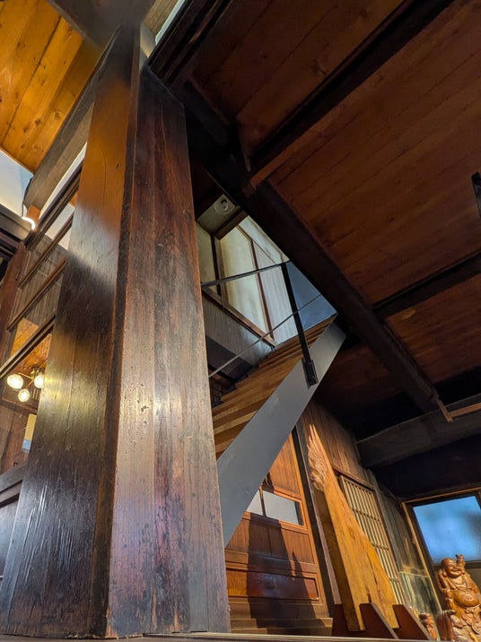 釘を使わずに組まれた欅の柱が室内を支え、木の温もりと歴史の重みを肌で感じていただけます。