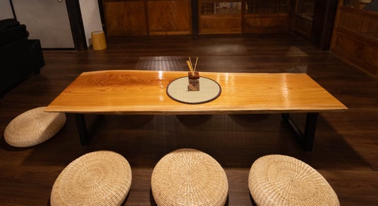 さらに、建物を支える欅の柱と調和し、宿のシンボルとなるよう、欅の一枚板テーブルを新たに導入しました。このテーブルは、ファシリティーマネージャー自らが選定し、制作された職人の方から「想い」と「歴史」を直接引き継いだものです。