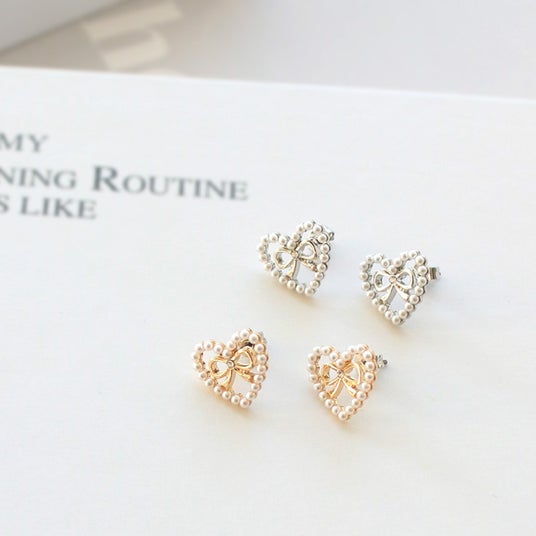 商品名:パールハート×リボンチタンピアス