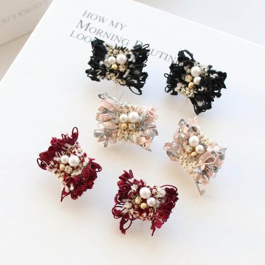 商品名:ツイード×パールイヤリング