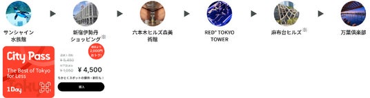Klook( https://www.klook.com/ja/activity/155410-tokyo-city-pass-1day/?spm=SearchResult.SearchResult_LIST&clickId=b4e32145ce)やKKday( https://www.kkday.com/ja/product/279586 )など世界各国のオンライン旅行代理店で販売中