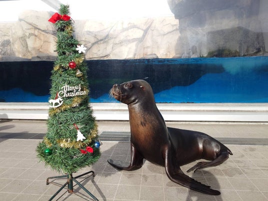 オタリアがお客さまの前に登場し、バランスなど得意技を披露し、またオタリアの背中にさわりながら、写真を撮影できるオタリアフレンドリータイムがクリスマスバージョンに!