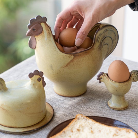 にわとりのエッグカップ、バターケース(瀬戸焼)