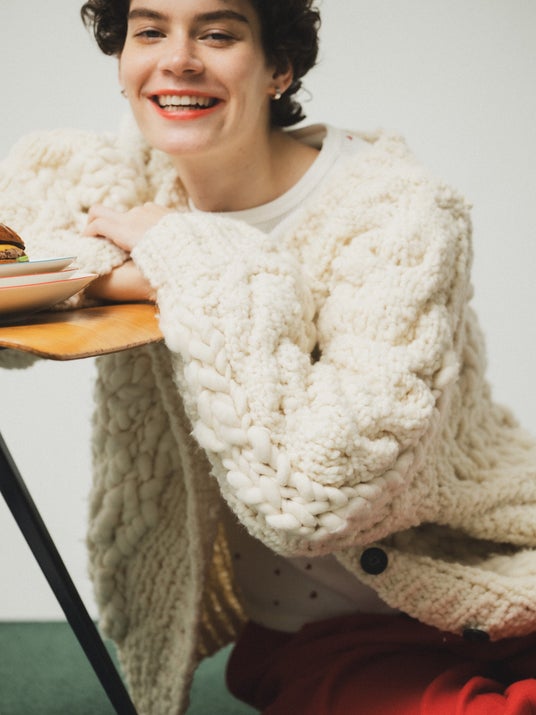 Big Slub Knit Cardigan / IVORY・NAVY ¥64,900(発売中)