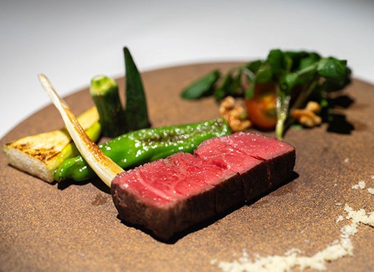 メインには、温暖な気候の中でのびのびと育った石垣牛をご用意。軽やかさの中に奥行きのある甘みとコクが宿るその肉質は、きめ細かな霜降りが生み出すしっとりとした口あたりが魅力です。丁寧な火入れで、素材の旨みを最大限に引き出しています。