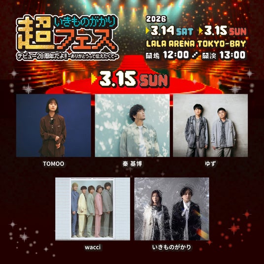 デビュー20周年を迎える2026年は、4月より16年ぶりとなる全県ツアー「いきものがかりの みなさん、こんにつあー!! 2026-2027 超全国あんぎゃー!! ~47都道府県ぐるっと日本一周しまSHOW!!~」を開催することが決定している。