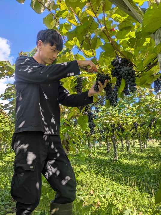 日本で唯一、国が認めたぶどうの地理的表示(GI)を持つスチューベンを、完熟状態で収穫。