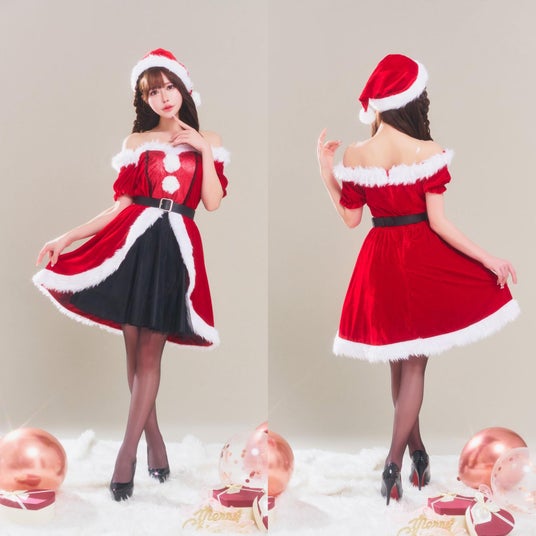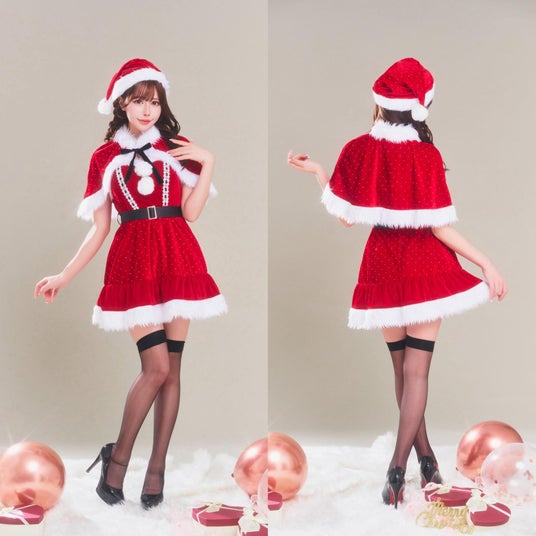 落ち着いた赤の上質なベロア生地に、ケープの縁にはラインストーンがきらめくドレッシーなサンタコスチューム。ボリュームのあるファーやこだわりの生地・パーツが、ワンランク上の着こなしを叶えます。