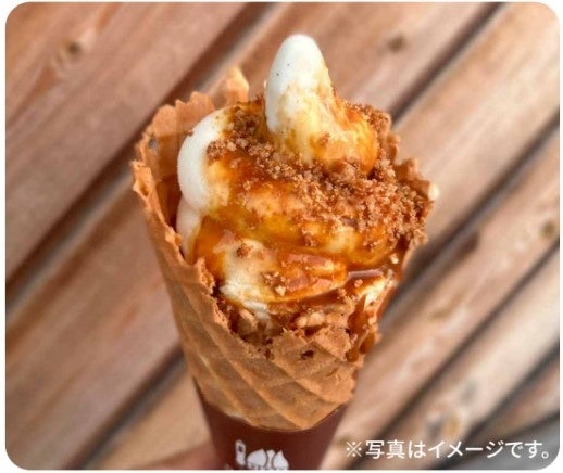 素材本来の風味や余韻を味わうために、香料・着色料・保存料も一切不使用!“ほろ苦プリンソフトクリーム”は、コクがありつつもさっぱりとした味わいの兵庫・多可「そらまめ農場」の卵に、ほろ苦いキャラメルを合わせました。今回は、お好きなジェラートの上にこのソフトクリームをのせた特別メニューが登場。さらに手焼きコーンをトッピングすればおいしさをより後押し!