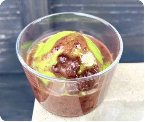 やさしい甘みのあたたかいおしるこを、なめらかなアイスクリームにとろりとかけてお召し上がりいただきます。口に広がるのは、和のやさしさと洋のまろやかさが溶け合う、心ほどける至福の味わい。アイスは、ミルクはもちろん、バターや抹茶などお好きなフレーバーを選べます。