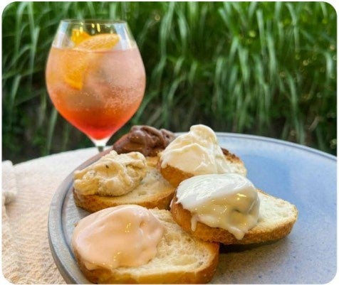店主の井上さんが「イタリアの最新文化を大阪で感じてほしい!」という想いから、“APERITIVO(食前酒)”をテーマに、ゴルゴンゾーラやスモークサーモンなどのジェラートをバゲットにのせた、まさにおつまみ感覚で楽しめるジェラート。お酒好きにはたまらない、甘くないジェラートのおいしさを堪能できるセットです。味は、ゴルゴンゾーラ、スモークサーモン、パルミジャーノ・レッジャーノ、バルサミコ、アンチョビの5種類からお選びいただけます。