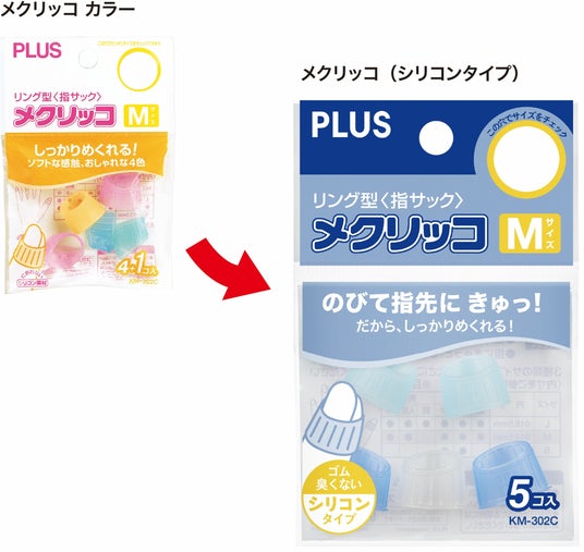 プラス株式会社(東京都港区 代表取締役社長 今泉忠久)は、20 年近くにわたってロングヒットした、ソフトな感触・おしゃれな4色がキャッチコピーのリング型 指サック「メクリッコ カラー」をリニューアル。男女使いやすいカラー・パッケージに一新。ネーミングも「メクリッコ(シリコンタイプ)」として、2026年1月1日に発売します。