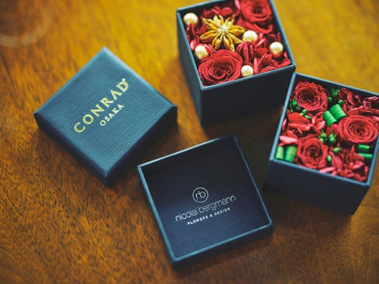 コンラッド大阪ロゴ入り プリザーブドフラワーボックス、ホリデーベア付きプラン(数量限定)