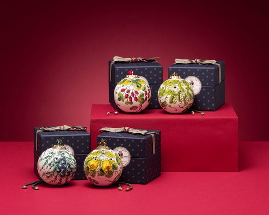 サンタ・マリア・ノヴェッラを象徴するフレグランス「ポプリ」の香りをトスカーナ伝統の陶器に閉じ込めたオーナメントボール型ホームフレグランス。ポプリの原料となるローザ カニナ(バラの果実)、ルッポロ(ホップ)、ミトロ(銀梅花)、ローザ ジアッラ(イエローローズ)の4種類の植物の模様は、フィレンツェの職人によって一つ一つ手描きで仕上げられています。空間を華やかに演出するインテリアとしてはもちろん、クリスマスシーズンにはツリーを彩る特別なオーナメントとしても輝きを放ちます。